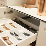 I den här lägenheten finns ett badrum utrustat med hårtorkar, gratis toalettartiklar och handdukar. Du har också tillgång till en handikappdusch, en separat toalett och en tvättmaskin.